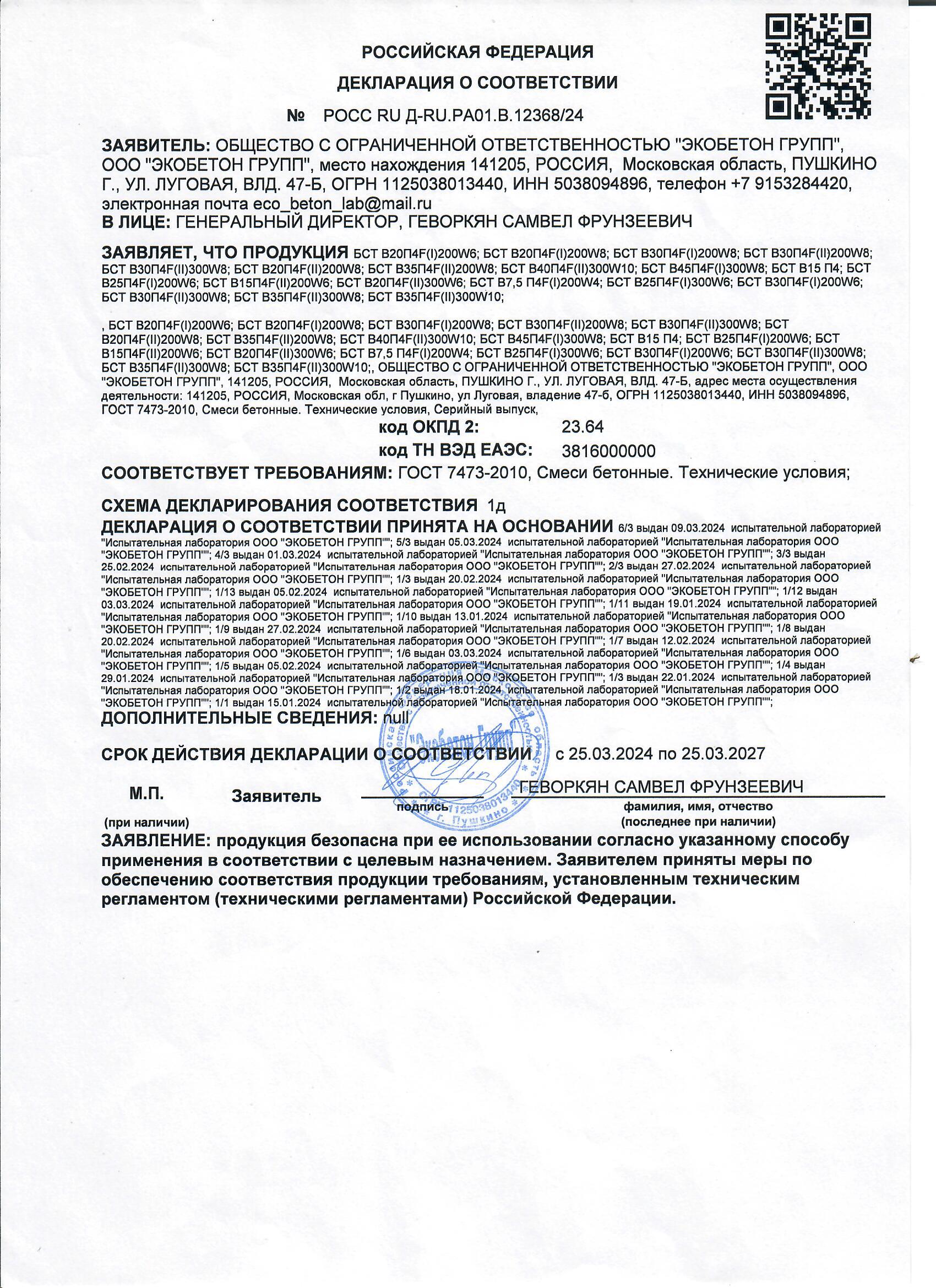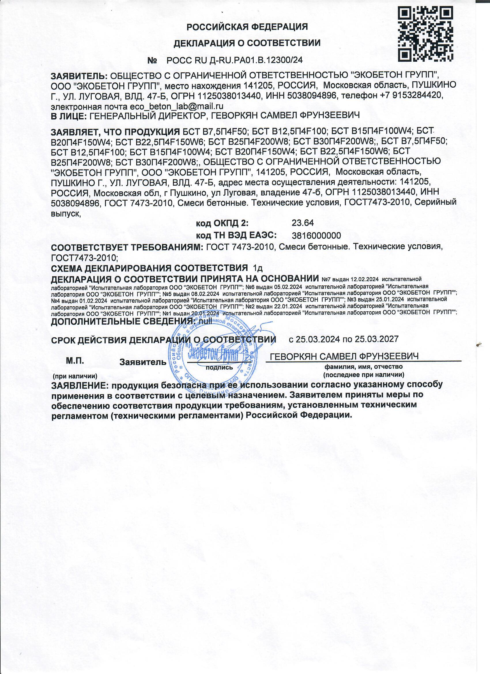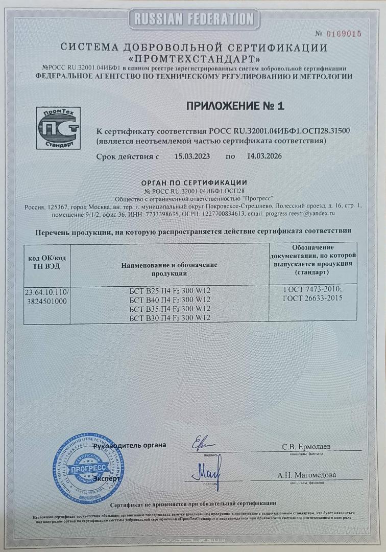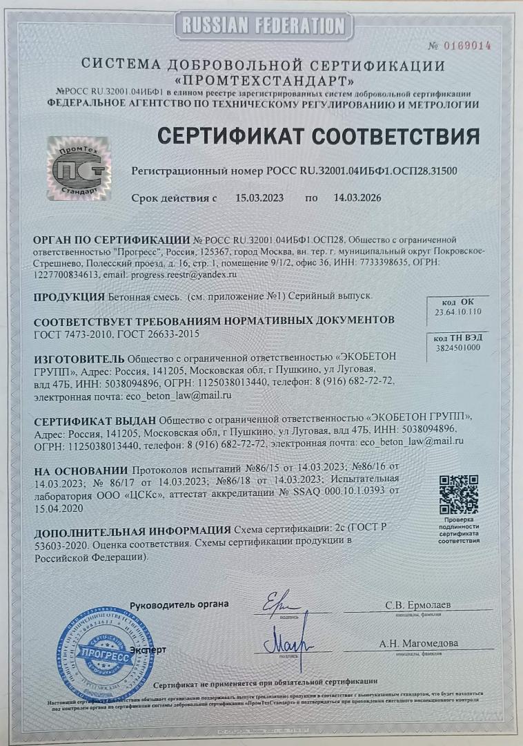 Мы следим за качеством нашей продукции. На этой странице представлены сертификаты соответствия на раствор и бетонные смеси.