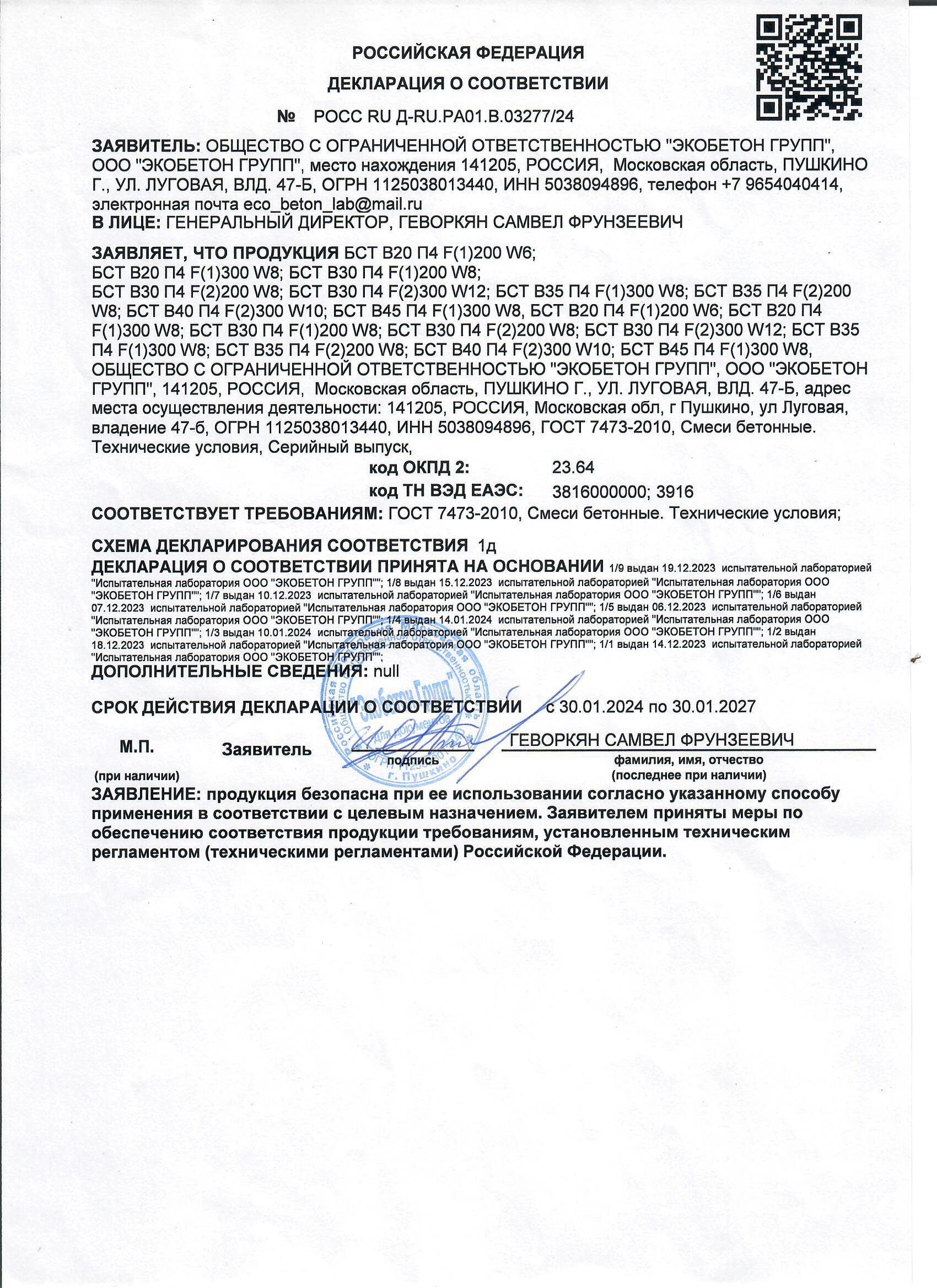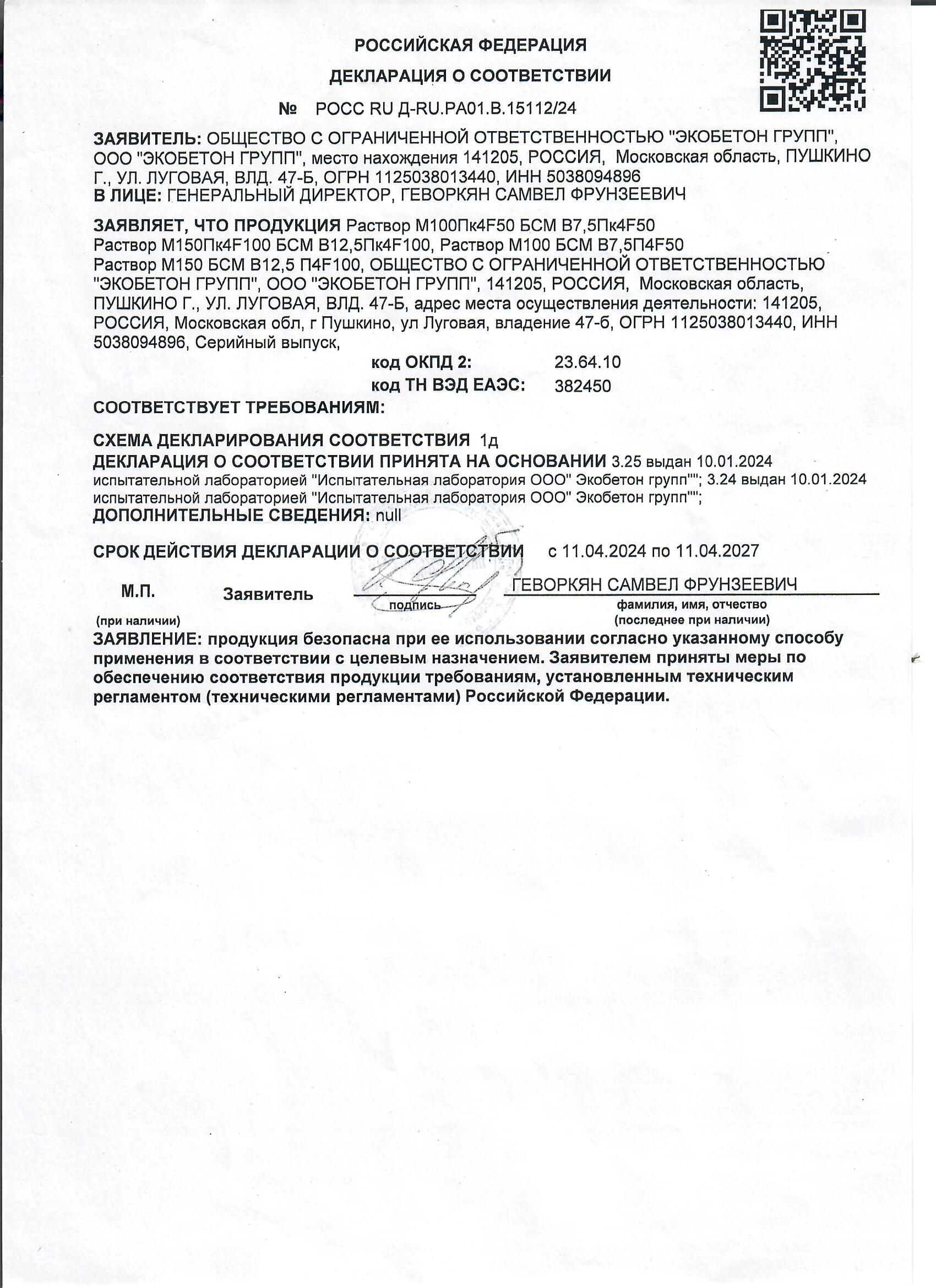 Мы следим за качеством нашей продукции. На этой странице представлены сертификаты соответствия на раствор и бетонные смеси.